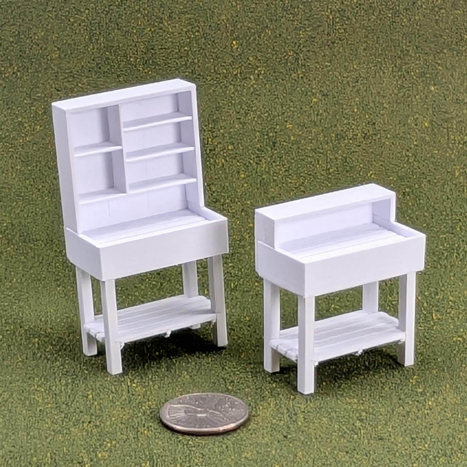 Unique, custom-designed, and 3D-printed Potting Table in 1:24 scale, offered in 2 different styles and in many colors. Show off your potted plants, gardening tools, and other mini gardening accessories.