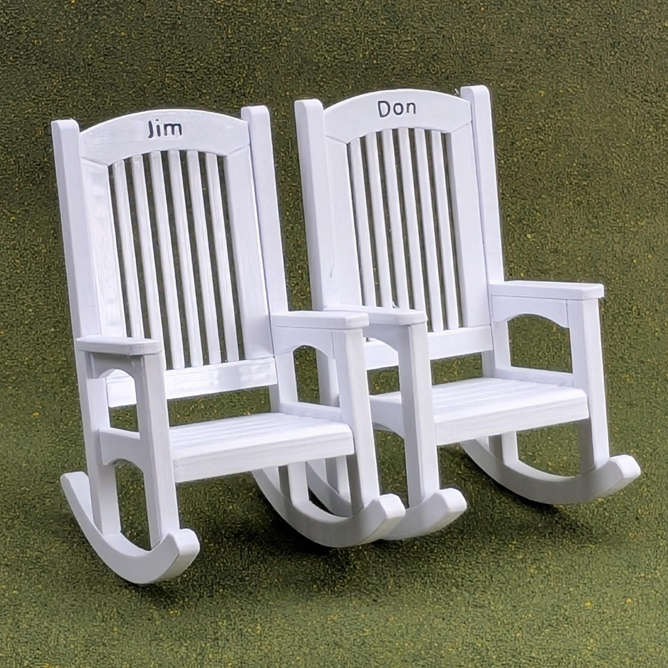 Enjoy this beautifully crafted miniature rocking chair, personalized with your choice of up to 10 letters or characters on the back of the chair. Lettering will be white on dark-colored chairs, and black on light-colored chairs.