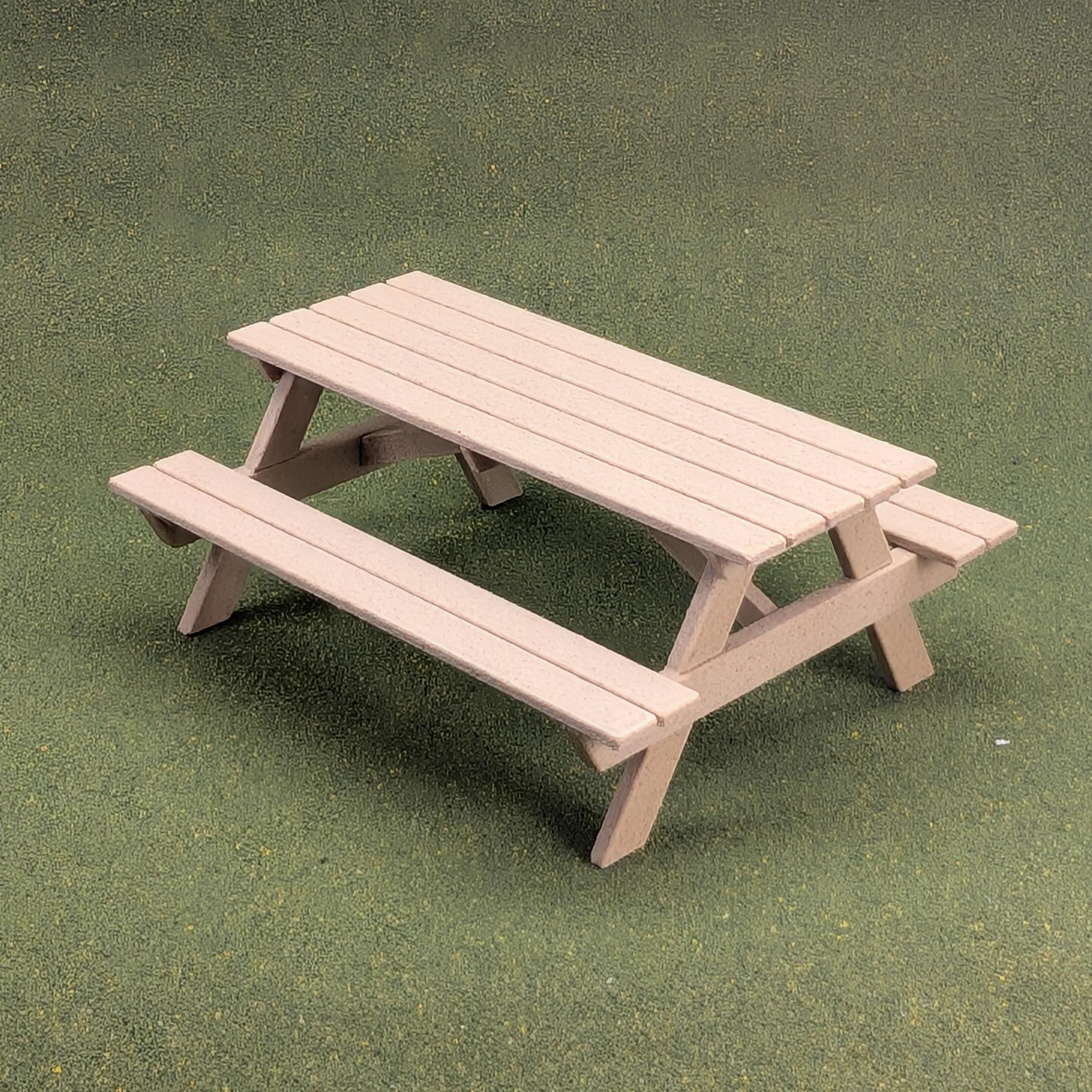 Our custom-designed picnic table will look wonderful on your doll house porch, miniature outdoor garden, or table decoration. This 1:12 scale model is sturdy and suitable for supervised play by children.