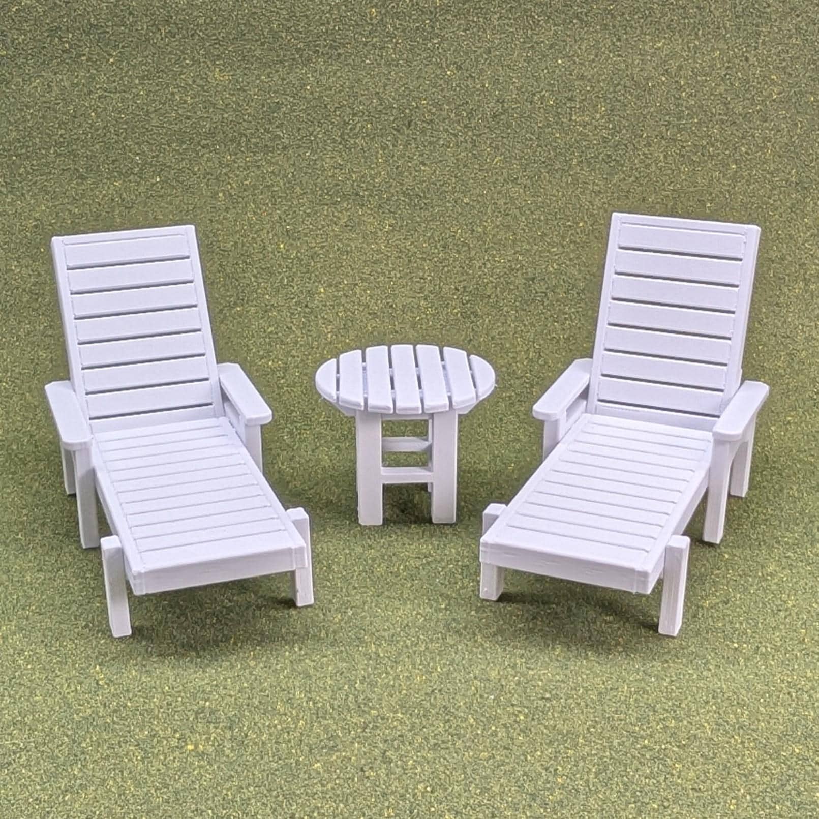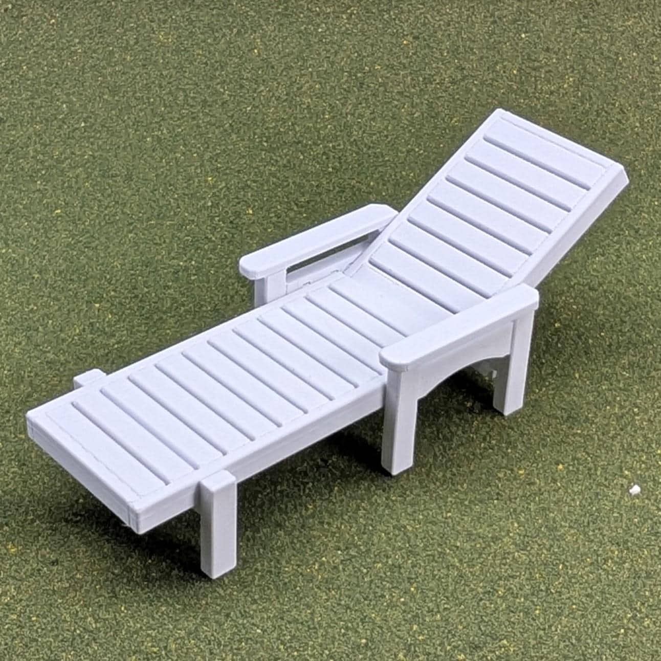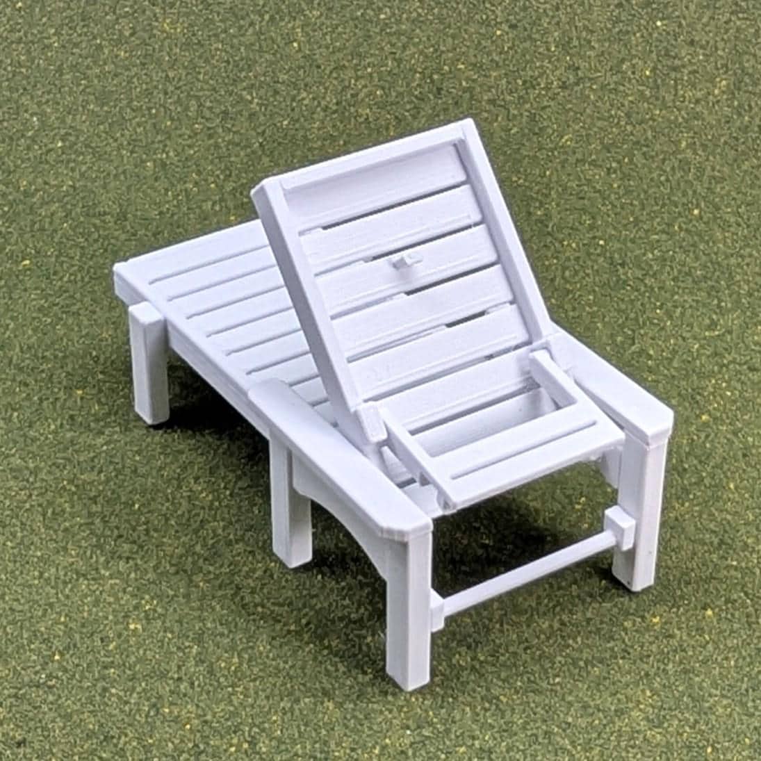 This is a custom-designed and 3D printed chaise lounge in 1:12 scale. The back of the chair can be adjusted just like a real chair - upright, reclining, and laying flat.