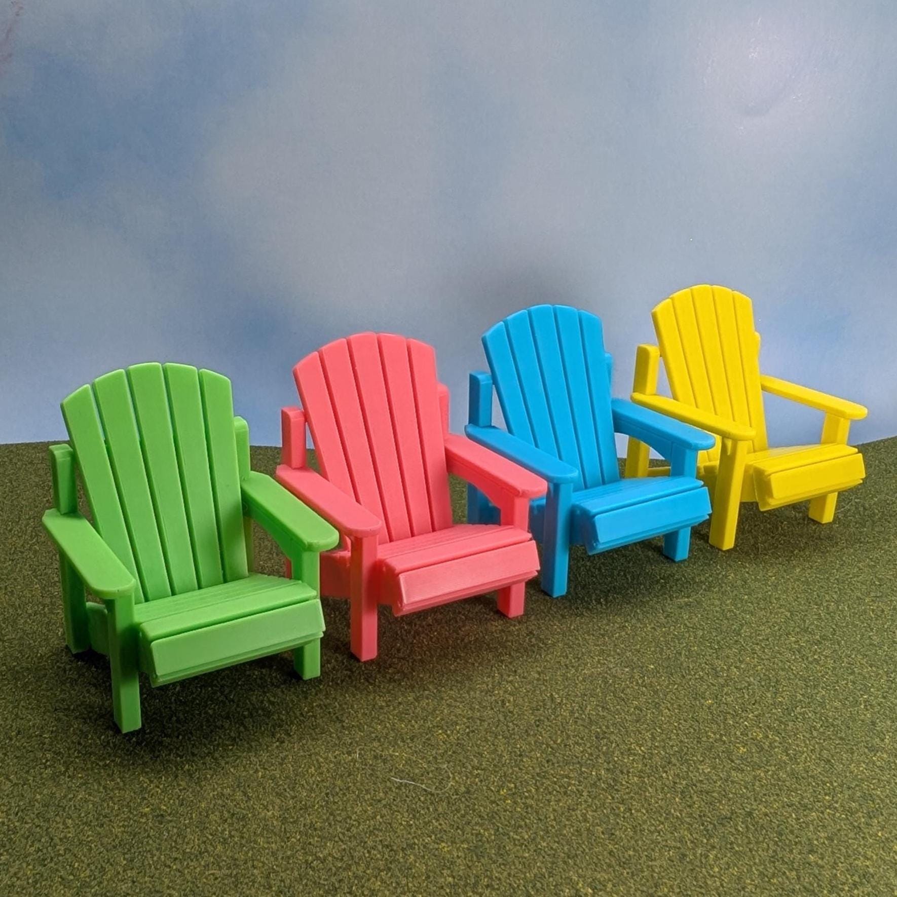 Adirondack chair, custom-designed and 3D printed in my home workshop and ready for your miniature patio or garden. This 1:12 scale model is sturdy and suitable for supervised play by children.