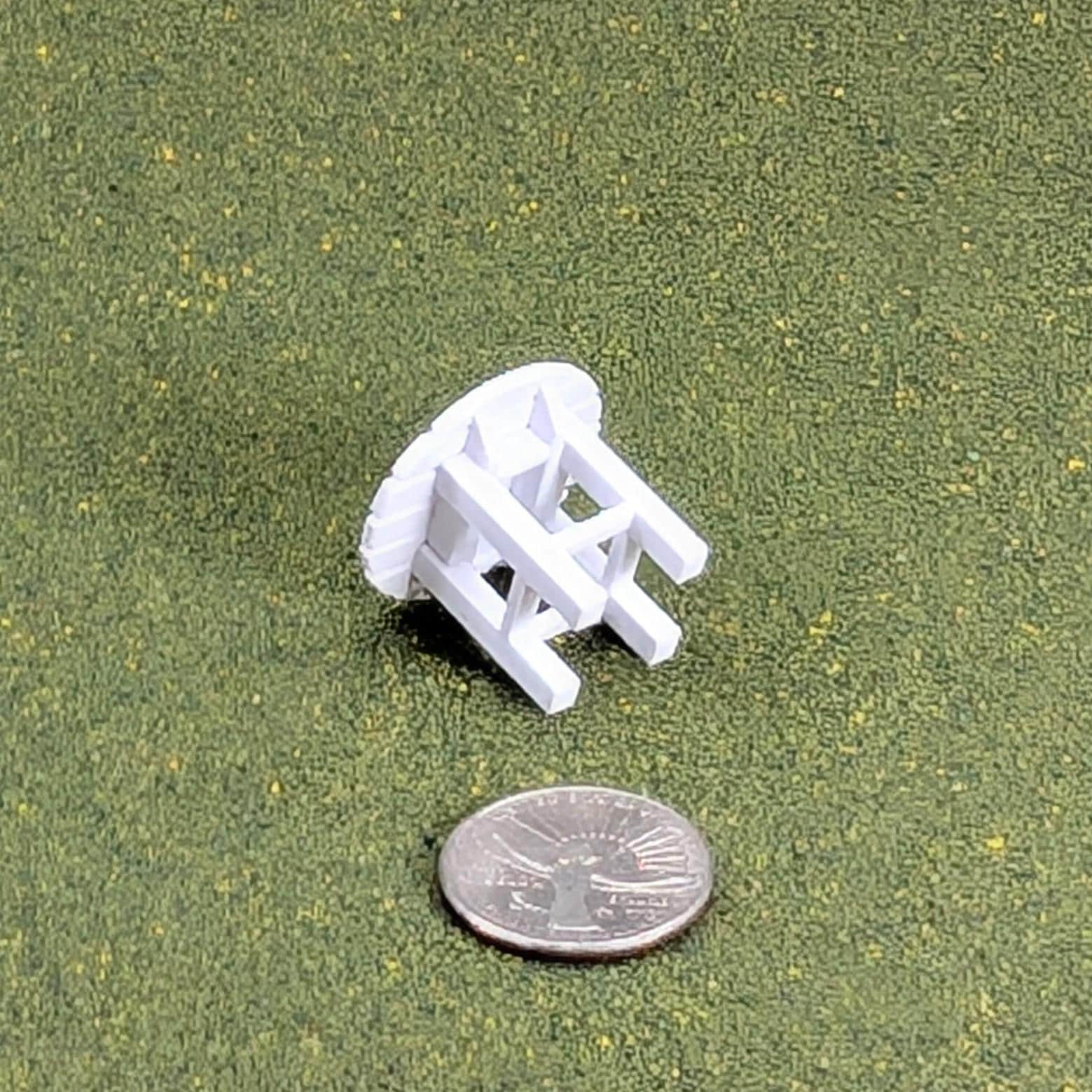 This is a custom-designed and 3D printed Adirondack-style side table in 1:24 scale.