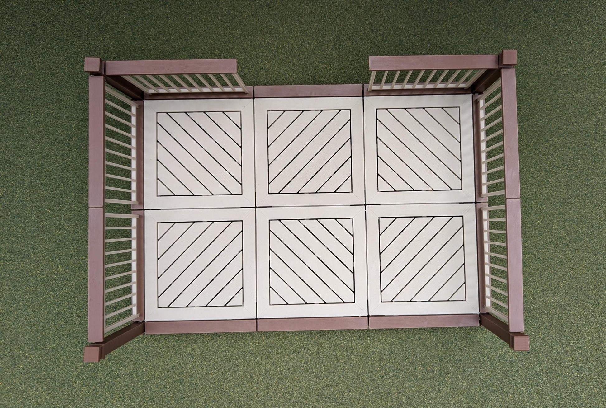* 6-panel kit, contains 6 deck panels, 7 railings, 4 corner posts, and all of the various connectors needed.
