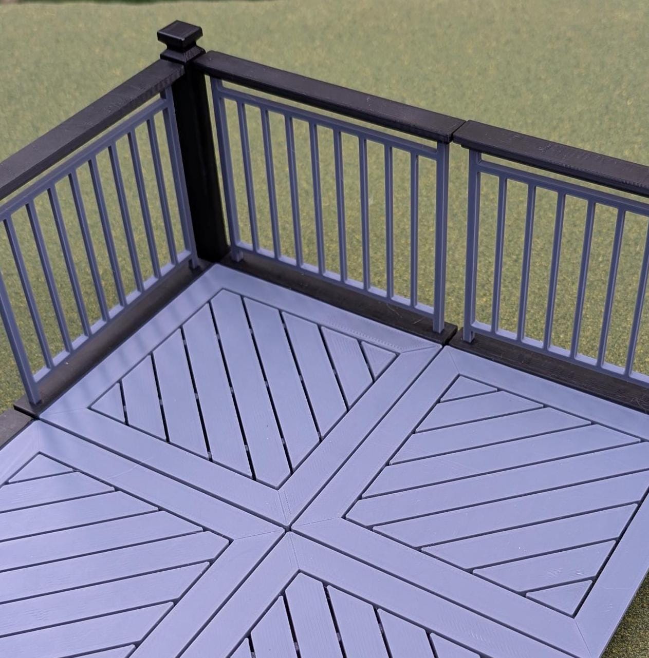 This 1:12 scale kit contains all the pieces to build a patio with full railings on 2 sides and a railing with an opening/step on the 3rd side. We also provide an extra railing if you would like your deck enclosed on all 3 sides.