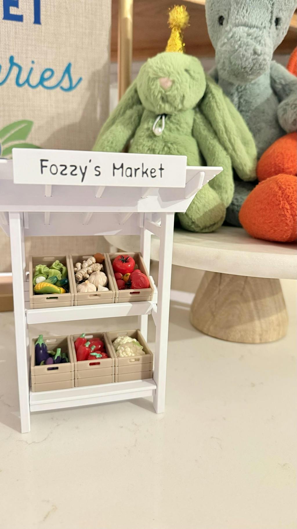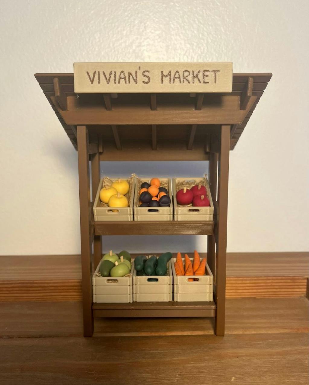 We are pleased to offer this unique, custom-designed 3D-printed Farmers Market Stand in 1:12 scale. Show off your miniature fruits, vegetables, flowers, etc. Each market stand includes 6 beige crates, 3 large and 3 small.